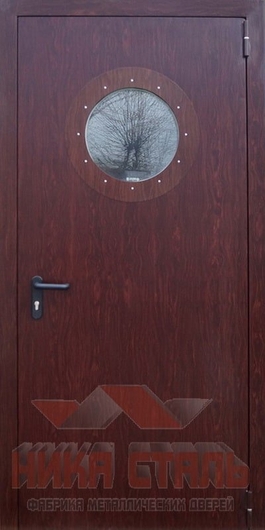 Противопожарная однопольная дверь с круглым окном и отделкой МДФ Арт-165